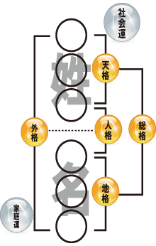 人の姓名には、天格、人格、地格、総格、外格があり、それぞれの意味があります。